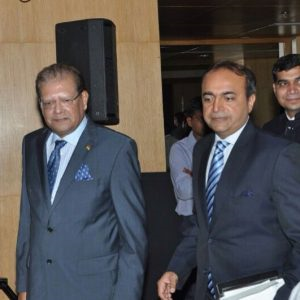 Old memory lane – With Rajiv Agnihotri Chief of Mauritius bureau, Dr Navin Ramgoolam Leader of Labour party Mauritius and Prashant Tewari Editor in Chief of Opinion Express Group in Port Louis Mauritius