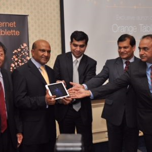 Mr Narayan Murthy unveils Penta edutab intended to bring revolution in rural education & skill development: In picture from L to R Prashant Tewari, Prabhakar Rao, Mr Narayan Murthy Chairman Emeritus Infosys and Dr Hansraj Bharadwaj former Law Minister of India.