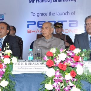H.E. The President of Mauritius Mr Rajkeshwar Purryag & The Governor of Karnataka H.E. Dr Hansraj Bharadwaj graced the function for the launch of Bharat Penta BSNL phone for rural market. Mr Prashant Tewari Editor-in-Chief, Mr RV Deshpande Minister of Higher Education were present on the dais to deliver key note address