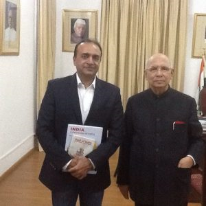 Prashant Tewari with Dr HR Bharadwaj Governor of Karnataka in an interview at Raj Bhawan Bangalore
