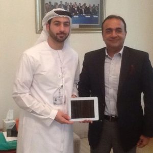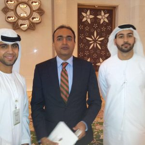 Prashant Tewari with Sheikh Rashid, Kumar Kushal CTO Reliance Industries and Ms Mohiba Khalil in Emirates towers Dubai during UAE visit to explore technology biz.