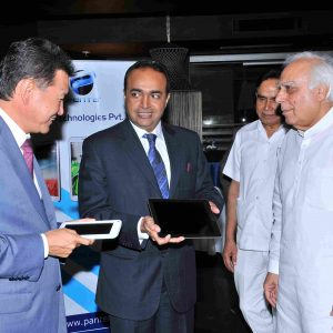 Make in India push – Kanha TECH India with FIC Taiwan ( One of world’s largest OEM ) to set up business of rugged laptop & tablet PC. L-R: Kumar Kaushal CTO RIL, Prashant Tewari EnC Opinion Express Group, Director FIC at FIC HQ Taiwan