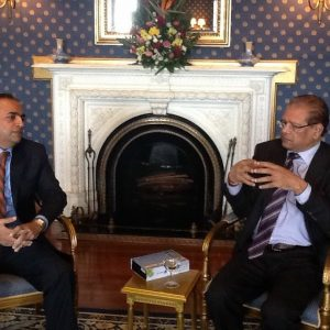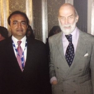 Prashant Tewari with Prince Michael of Kent, GCVO CD is a paternal first cousin of Queen Elizabeth II, being a grandson of King George V and Queen Maryand Jo Birring at GES Mumbai