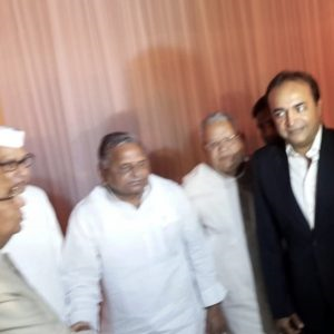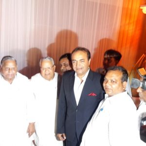 Dr HR Bharadwaj former Law Minister, Shri Mulayam Singh Yadav, Shri Kalraj Misra Union Minister of Small Scale Industries with Prashant Tewari at Zee award function.
