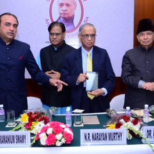 Narayan Murthy – Architect of IT Industry in India appreciated PV role in facilitating free economy and enterprise leading to economic prosperity: In picture from L to R Prashant Tewari, Prabhakar Rao, Mr Narayan Murthy chairman emeritus Infosys and Dr Hansraj Bharadwaj
