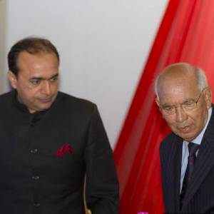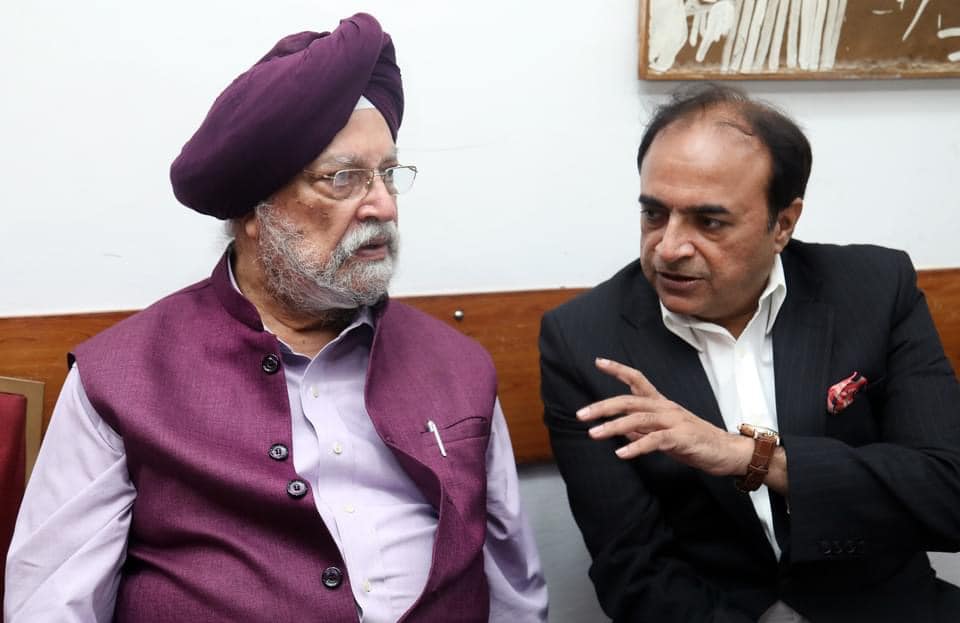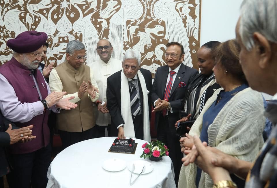 Transglobe Advisors celebrated the inimitable international senior lawyer & jurist Anoop Bose's birthday at the IIC. Anoop Bose's extraordinary brilliance was acknowledged by many celebrities who attended the function. L-R: Hardeep Singh Puri Union Min of Petroleum with Prashant Tewari Editor in Chief Opinion Express