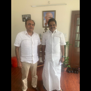 L-R: BR Shetty Face of the Indian PIO community in the Gulf for decades with Prashant Tewari in Bangalore