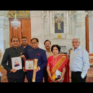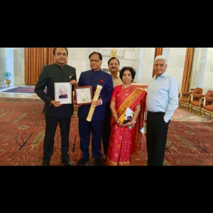 L-R: Prashant Tewari with PV Prabhakar Rao PV with prestigious Bharat Ratna Award confirmed on late PV Narasimha Rao former Prime Minister of India at Rashtrapati Bhawan. New Delhi