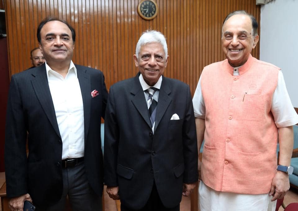 Transglobe Advisors celebrated the inimitable international senior lawyer & jurist Anoop Bose's birthday at the IIC. L-R: Prashant Tewari Anoop Bose and Dr. Subramanian Swamy