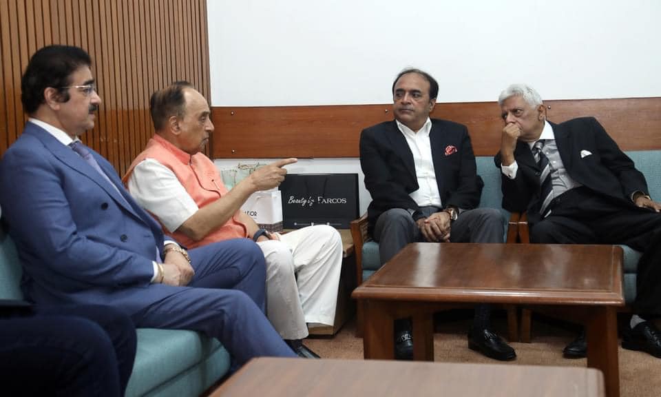 At a function in New Delhi, Karan and Arun Bharadwaj, former Justice of India, Justice Arjan Kumar Sikri, and Prashant Tewari engaged in meaningful discussions and celebrated legal excellence.