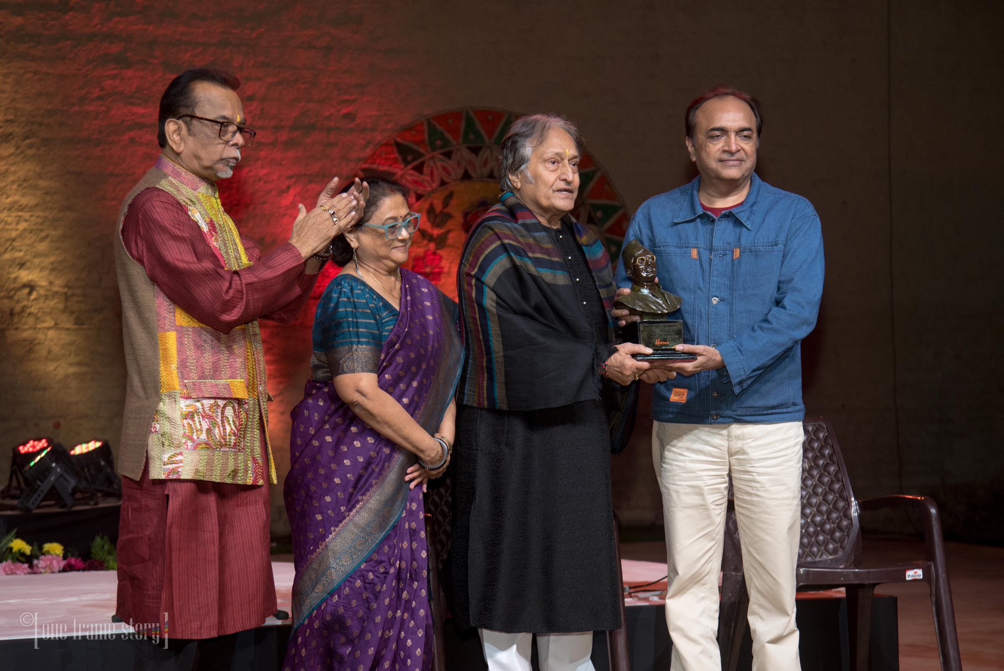 L-R: Krishna Mohan Misra, Vaswati Misra, Ustad Amjad Ali Khan and Prashant Tewari from The Pioneer at the National Award on music excellence in New Delhi